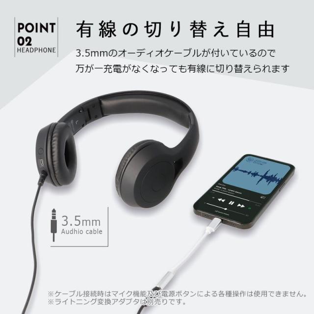 お手持ちのスマホ・タブレット・PCなどとBluetooth接続すればハンズフリー通話対応のワイヤレスヘッドフォンに。