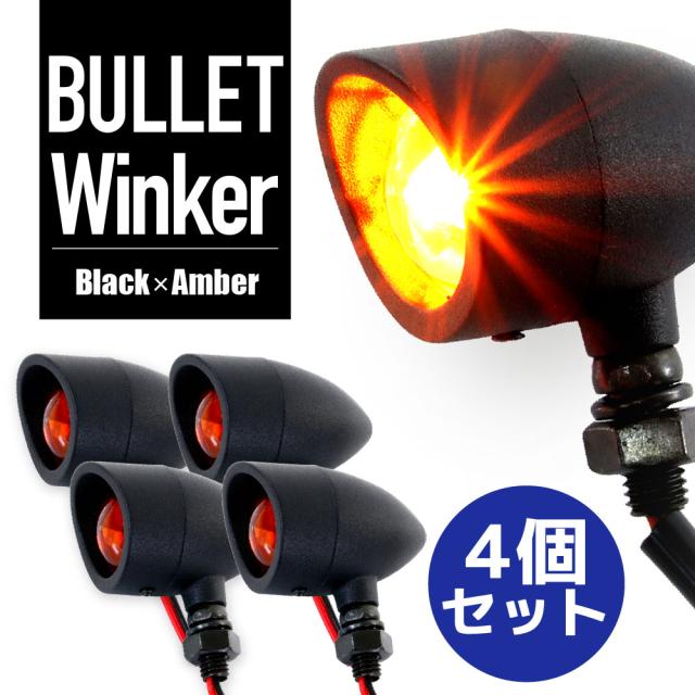 ブレット ウインカー アメリカン 砲弾型 アイアン ブラック 4個 セット アンバー 汎用 12V レブル シャドウ スティード エリミネーター イントルーダー バイク
