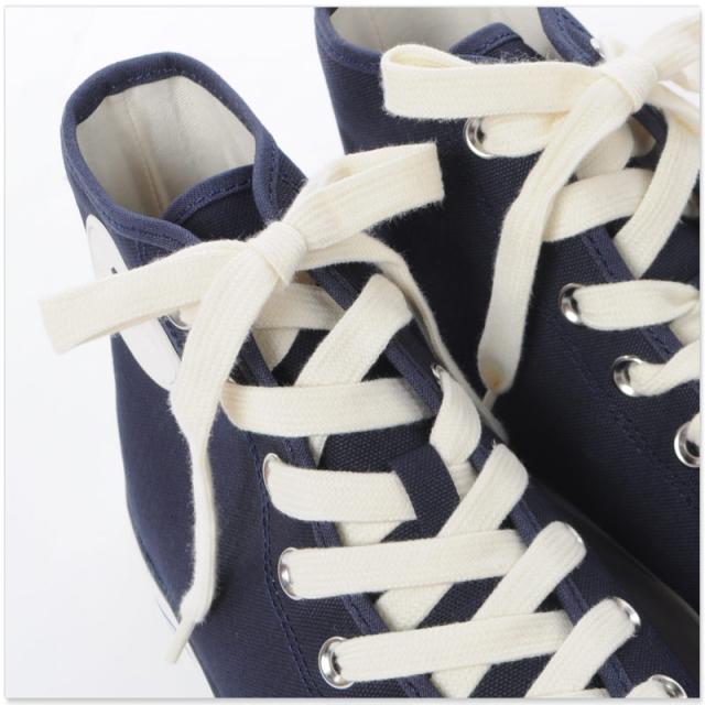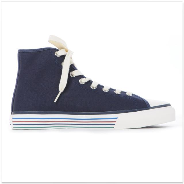 ハイカットデザインのキャンバススニーカー。ソールに施されたマルチカラーのストライプがアクセントになっています。ベーシックなスタイルに、ユニークなディテールをプラス。さりげなく個性を演出してくれるアイテムです!
