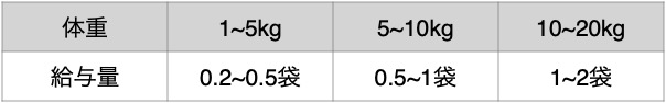 ※給与量は目安ですので、愛犬・愛猫のコンディションを観察しながら与えてください。
