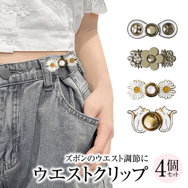 ウエスト 調整 アジャスター 4個セット ウエストアジャスター ズボン ボタン ウェスト クリップ ピン スカート パンツ スラックス ウエスト大きめ 詰め 男女兼用 レディース メンズ 大きめ グッズ ガーメントボタン 子供 大人 weist-clip