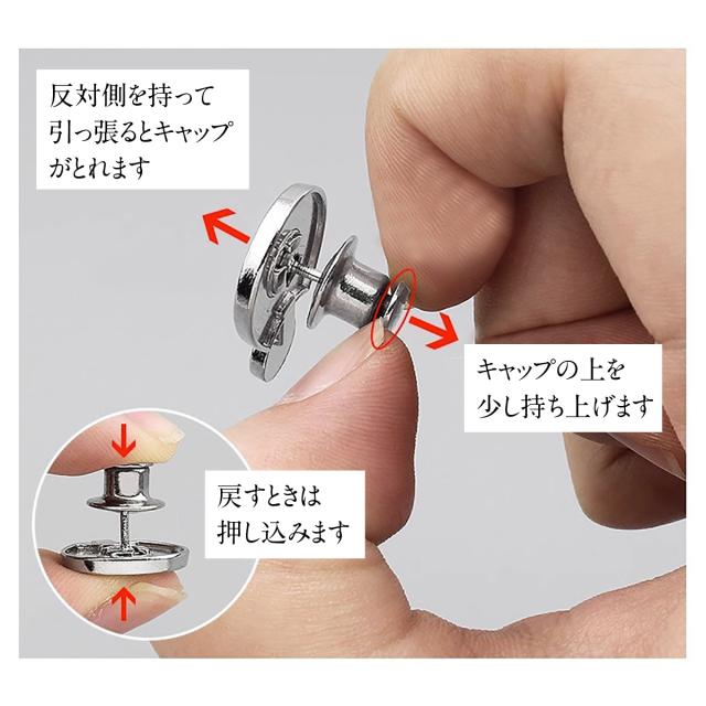 【縫いつけずに何回も使える】フック式でスムーズに留められる。ボタンのように取れる心配もありません。
