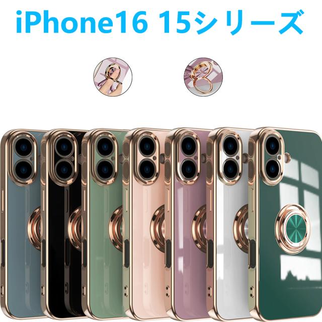 iPhone16 Plus iPhone15 16 Pro Max ケース メッキ加工 リング付き 回転一体型 アイフォーン 保護ケース 可愛い 軽量 スタンド機能 TPUスマホカバー
