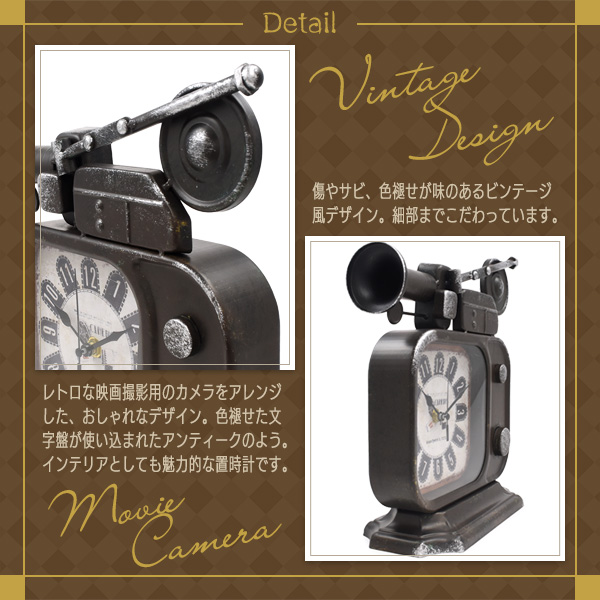ビンテージ風置時計 レ映画撮影用カメラデザイン