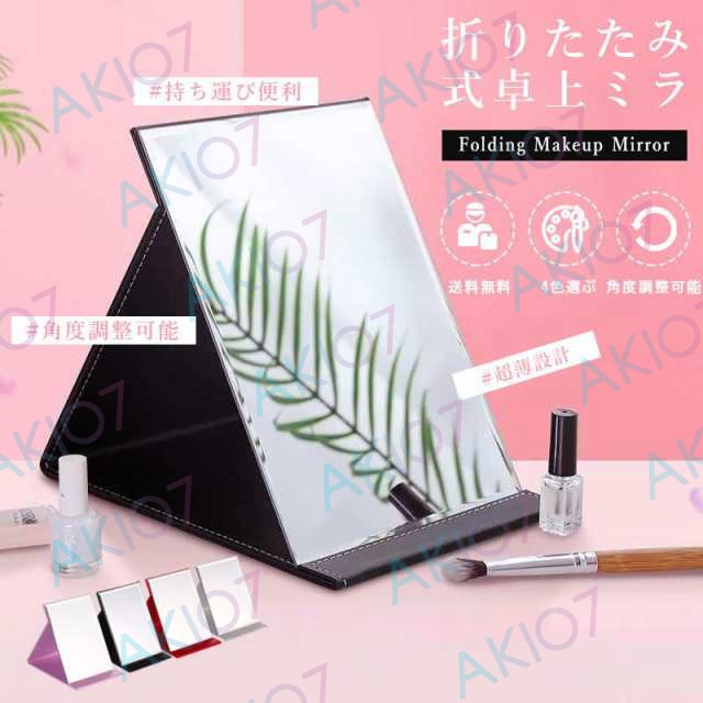 鏡 化粧ミラー 卓上 化粧鏡 折りたたみミラー 収納便利 調整自由 PUレザー 軽量 コンパクト 角度調整可能 超薄 持ち込み便利 女優 大きい メイク かわいい