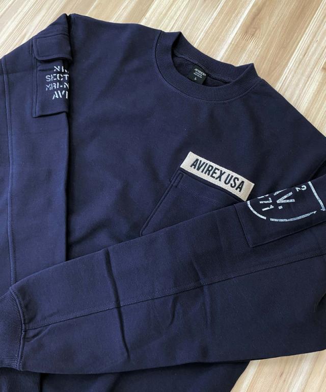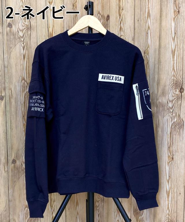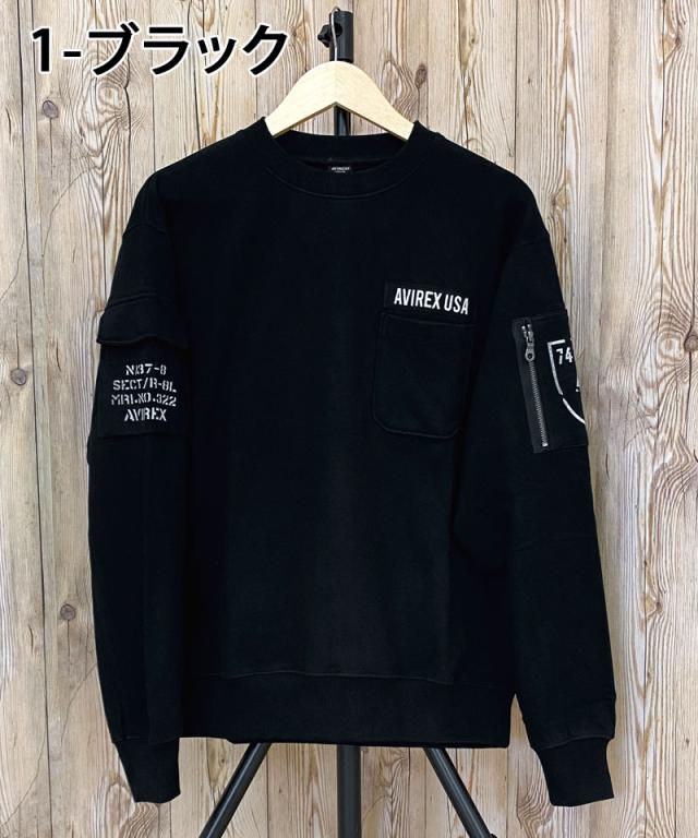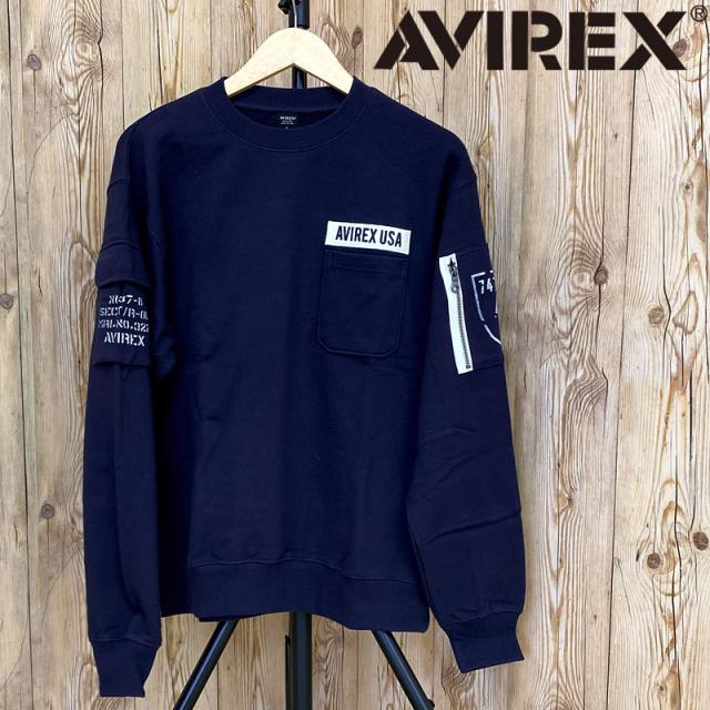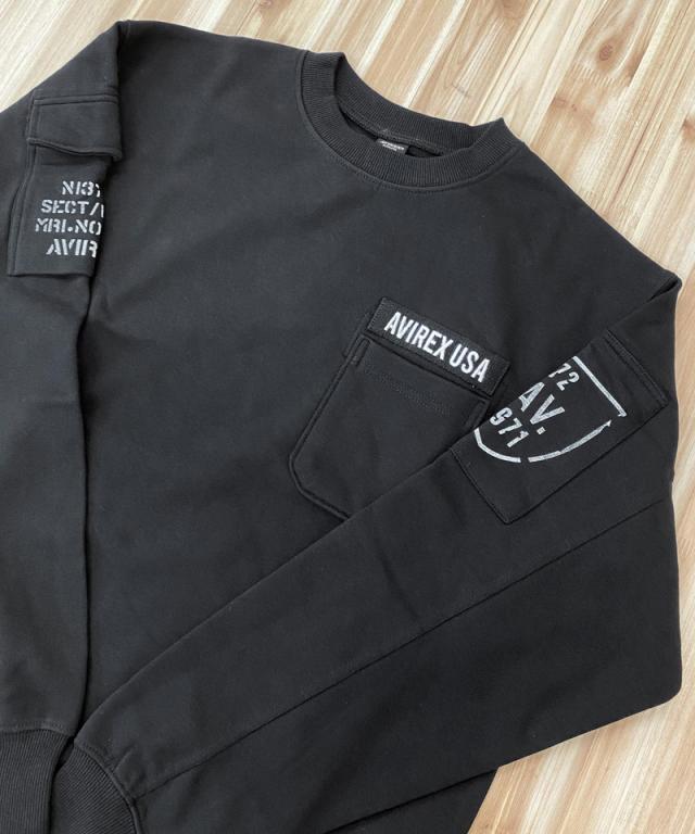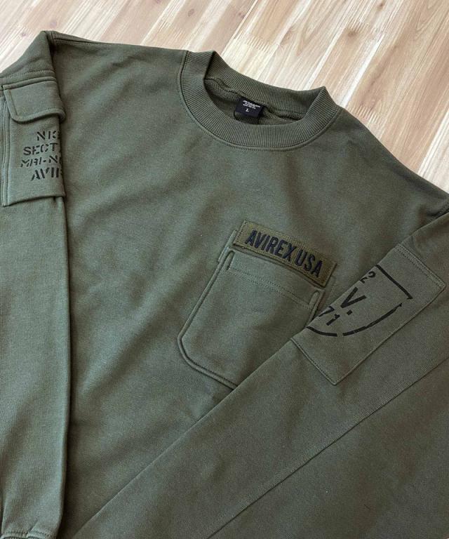 送料無料 AVIREX アヴィレックス FATIGUE クルーネック スウェット 783-3932004 ファティーグ スウェット シャツ ポケット付き トレーナー FATIGUE SWEAT SHIRTS アビレックス メンズ 長袖 トップス