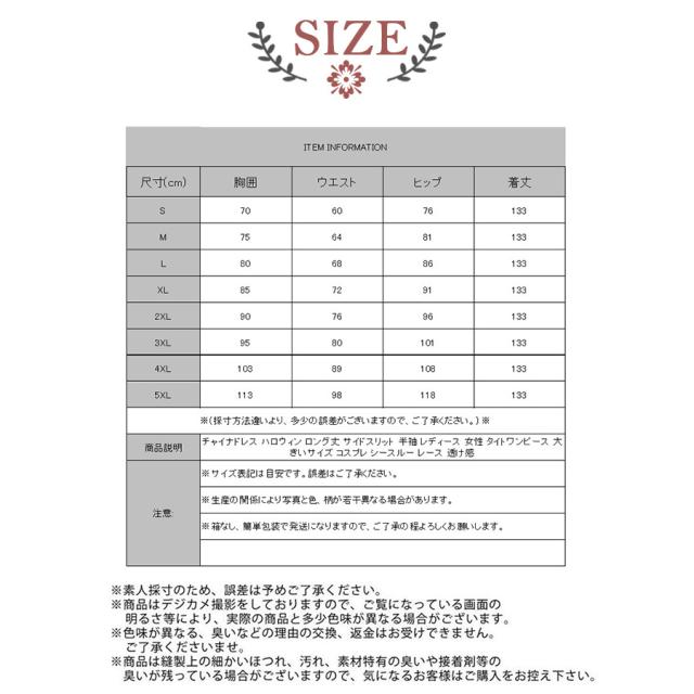 チャイナドレス ハロウィン ロング丈 サイドスリット 半袖 レディース 女性 タイトワンピース 大きいサイズ コスプレ シースルー