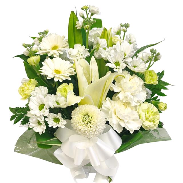 花材 白ユリと季節のお悔み用添え花(白基調)