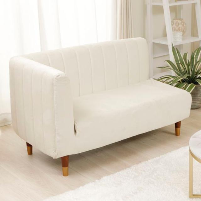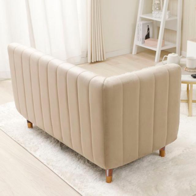 コンパクトながらゆったりくつろげるベロアのソファです。落ち着いた色合いのくすみカラーとこだわりの縦キルトが高級感と大人っぽさを演出します。