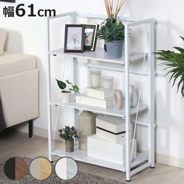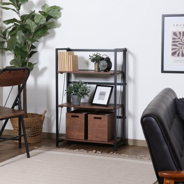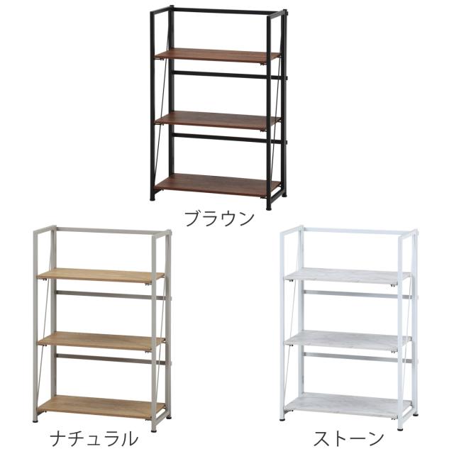 シェルフ 幅61cm 3段 折りたたみ式 ヴィンテージ調 ( 棚 ラック 本棚 折りたたみ 収納 家具 三段 省スペース コンパクト ディスプレイ 飾り棚 ブラウン ナチュラル ストーン )