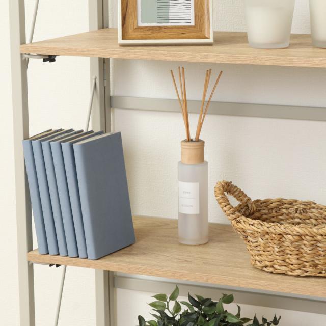 細身のスチールフレームでシンプルなデザインのオープンシェルフです。パタッと折りたためて使わない時は省スペースで収納できます。圧迫感が少ないオープンタイプなので、一人暮らしの方、ワンルームにお住まいの方にもおすすめです。