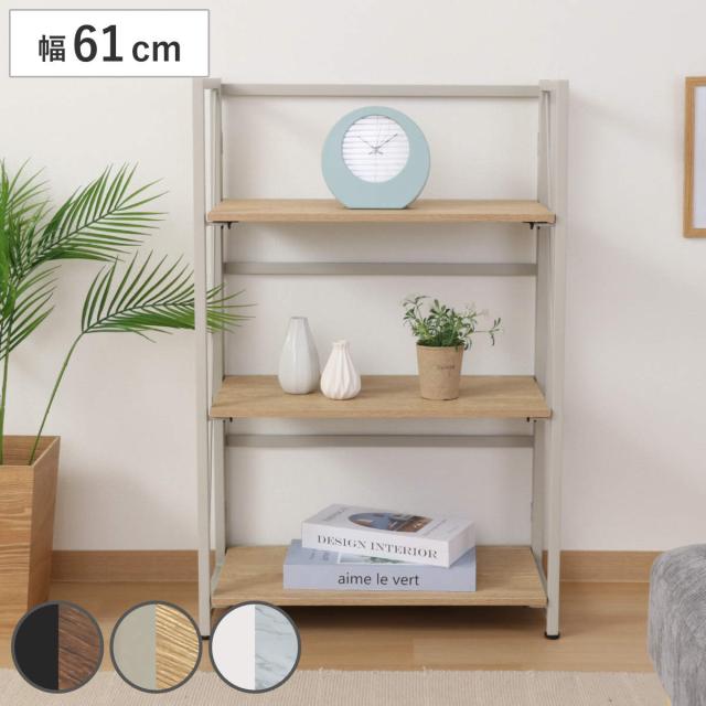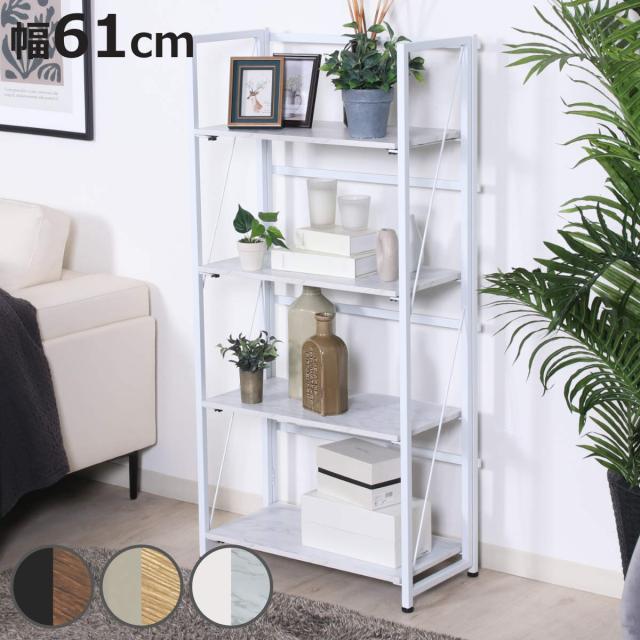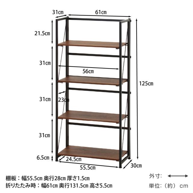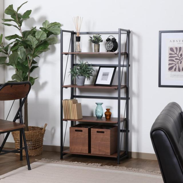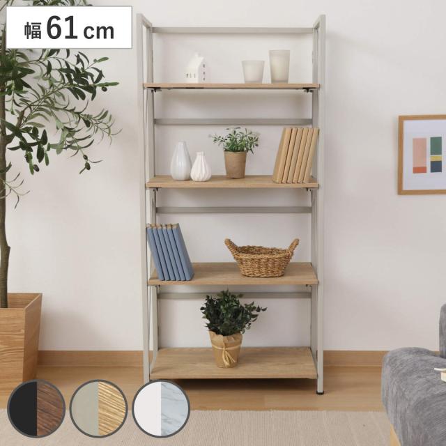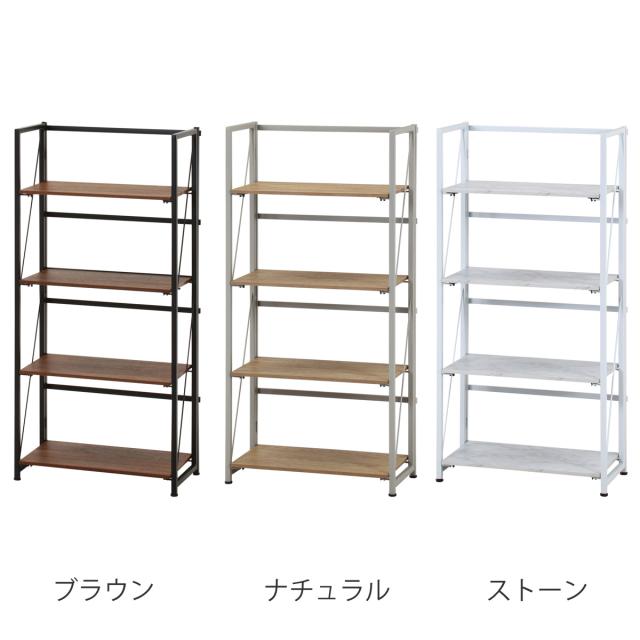 シェルフ 幅61cm 4段 折りたたみ式 ヴィンテージ調 ( 棚 ラック 本棚 折りたたみ 収納 家具 四段 省スペース コンパクト ディスプレイ 飾り棚 ブラウン ナチュラル ストーン )