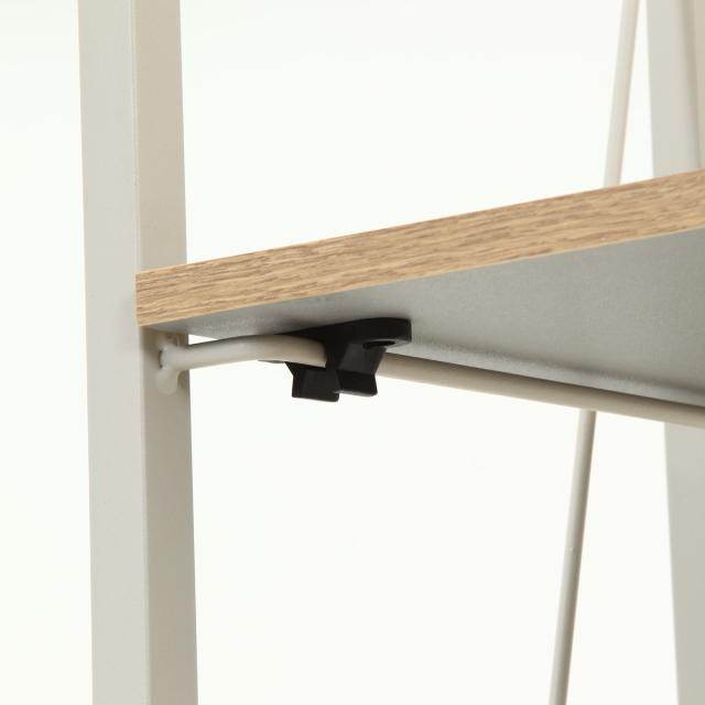 棚板裏面にあるストッパーとフレームをロックすると、棚板を固定したままでも使用できます。高さのある物を収納する時など、用途に合わせてお使いいただけます。
