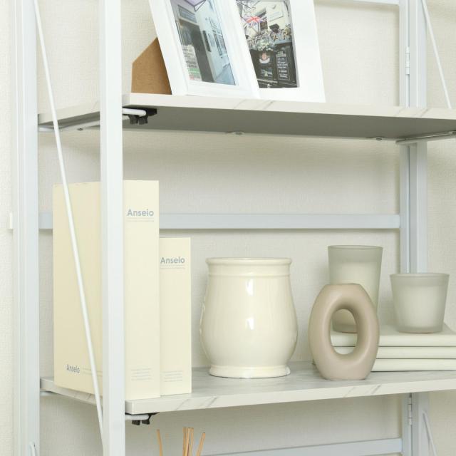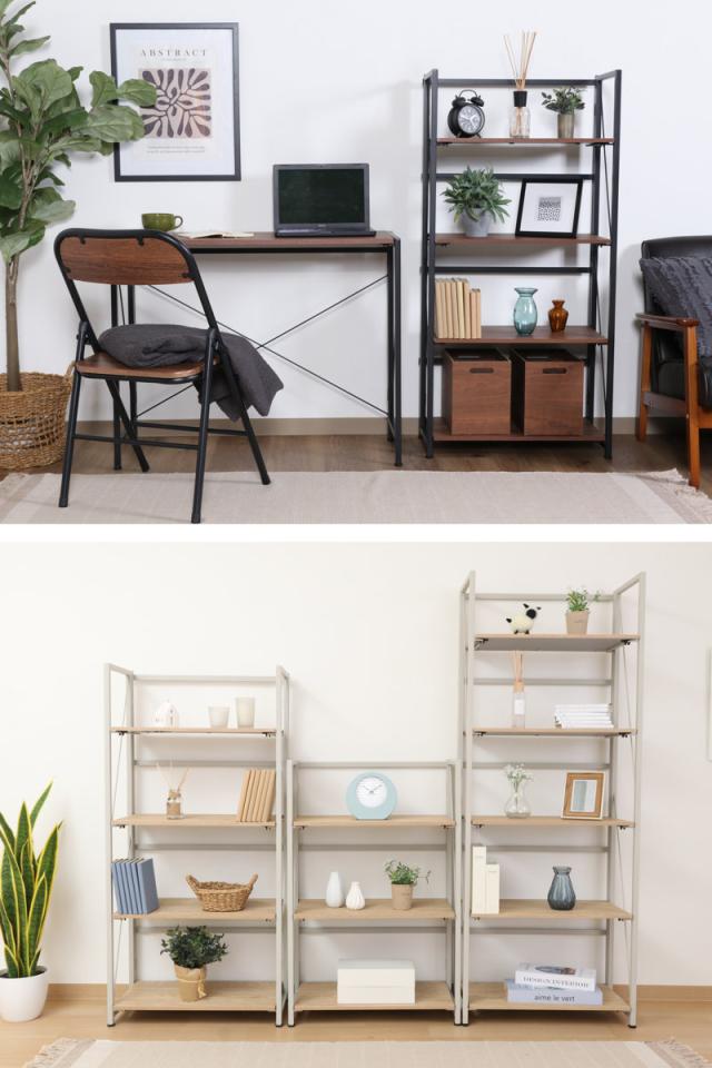 細身のスチールフレームでシンプルなデザインのオープンシェルフです。パタッと折りたためて使わない時は省スペースで収納できます。圧迫感が少ないオープンタイプなので、一人暮らしの方、ワンルームにお住まいの方にもおすすめです。