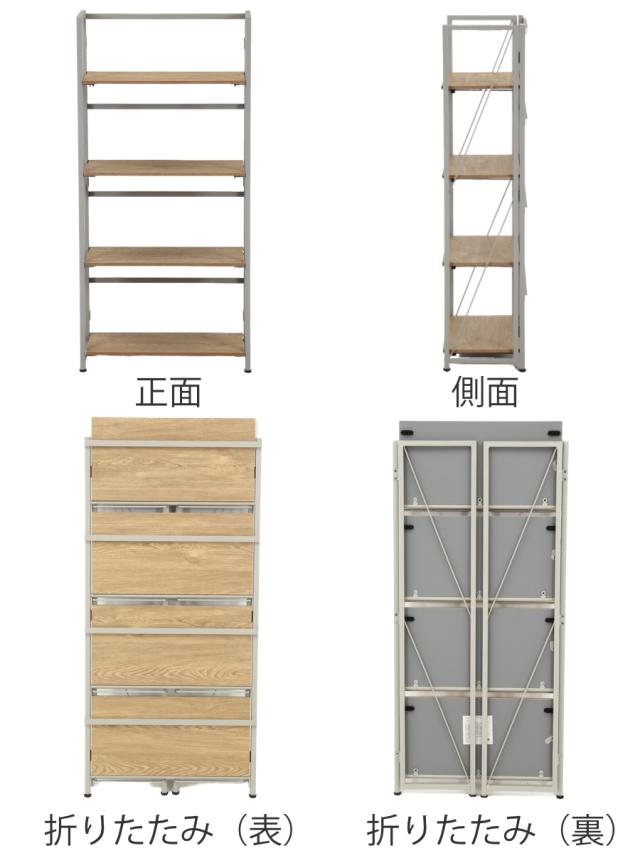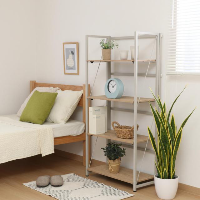 シンプルなデザインの折りたたみ式シェルフ 4段