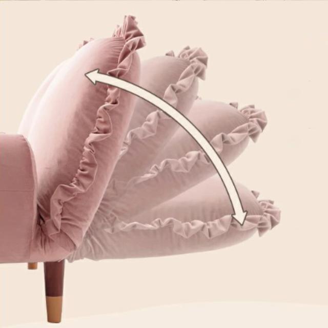 コンパクトでありながら長時間座っても疲れにくい座り心地にこだわりました。ソファが置きにくい一人暮らしやワンルームにお住まいの方にもぴったりです。高級感がありながら、落ち着いたくすみカラーが大人かわいい雰囲気を演出します。たっぷりのフリルもお部屋のアクセントになります。