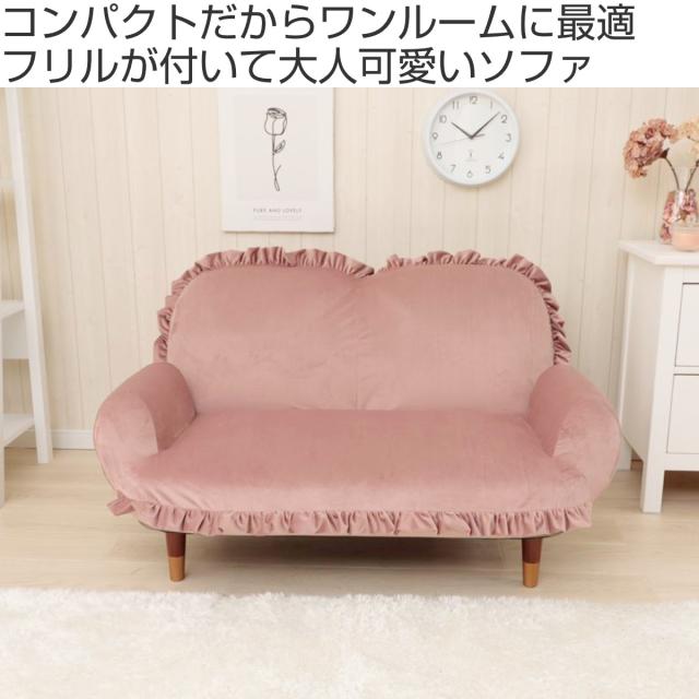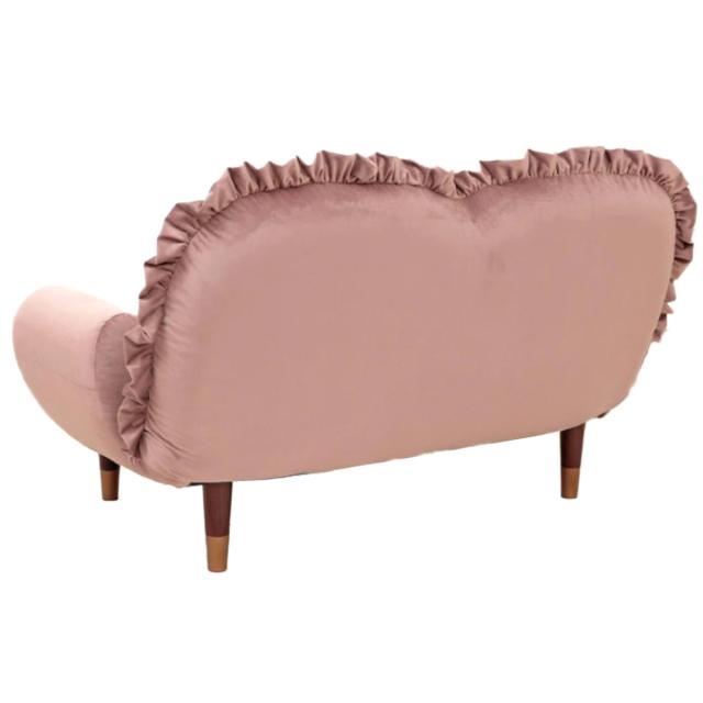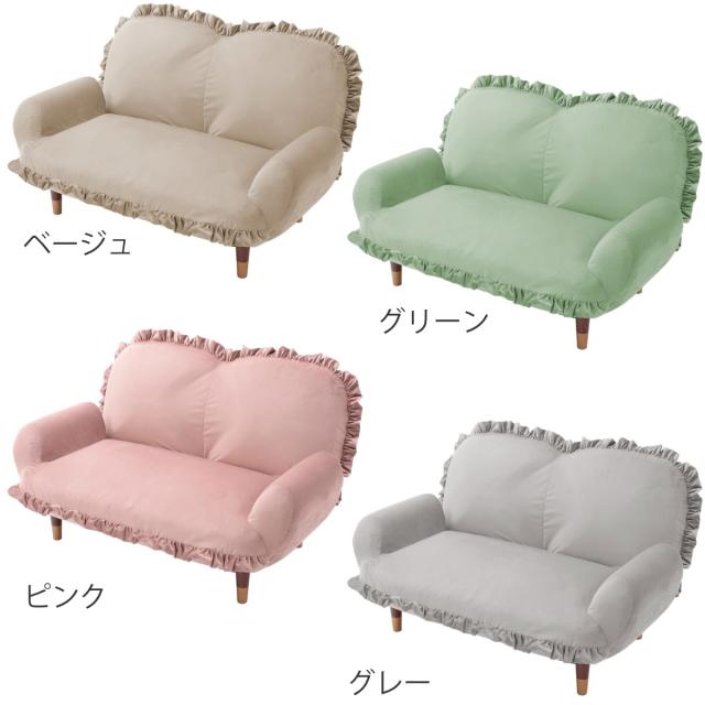 ソファ 2人掛け ベロア 脚取り外し可能 コンパクト リクライニング 幅110cm ( ソファー sofa ローソファ ロー 座椅子 完成品 日本製 ゆったり フリル かわいい おしゃれ パステルカラー くすみカラー )