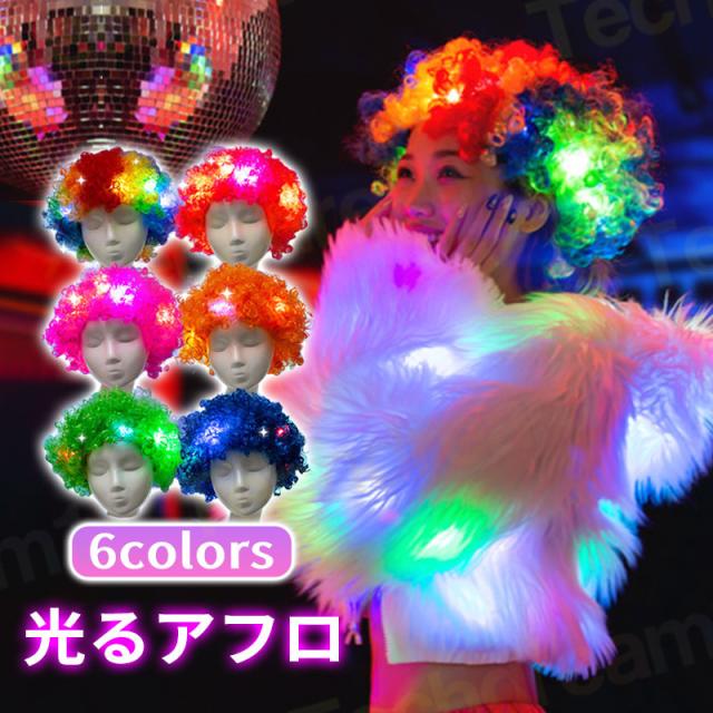光るアフロ ウィッグ コスチューム 仮装 変装 全6色 パリピ パーティー アフロ かつら カツラ ウィッグ LED アフロ クリスマス コスプレ おもしろい