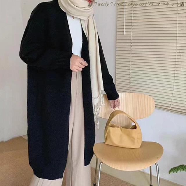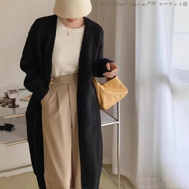 シンプルなコーデに羽織るが特徴的なニットカーディガン