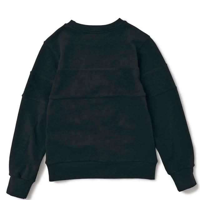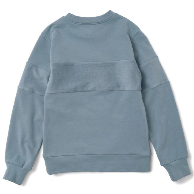 切り替え部分に本体生地の裏側を使用したデザインが特徴のスウェット。
