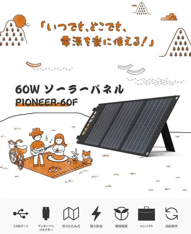 【正規代理店】BALDR PIONEER 60W ソーラーパネル スマホ タブレット アウトドア 太陽光発電 車中泊 キャンプ 地震停電対策 節電グッズ