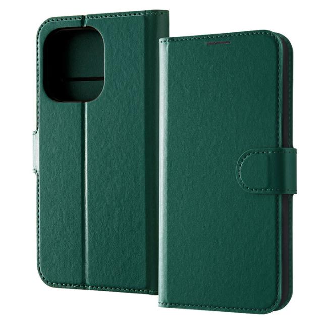 iPhone15Pro ケース 手帳型 耐衝撃 レザー シンプル マグネット plus グリーン カバー アイフォン スマホケース