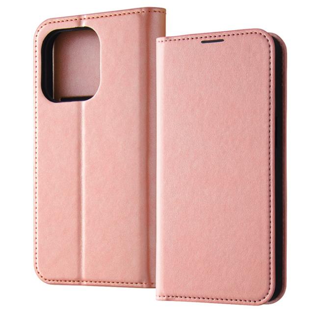 iPhone15Pro ケース 手帳型 耐衝撃 レザー シンプル シャイニーピンク カバー アイフォン スマホケース