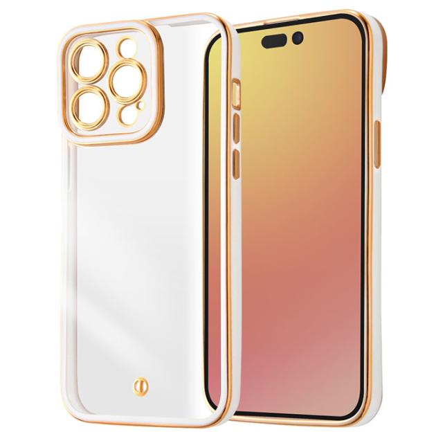 iPhone15ProMax ケース ソフトケース TPU メタリック LUSTANT ホワイト ゴールド カバー アイフォン スマホケース