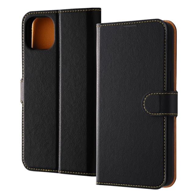 iPhone15Plus ケース 手帳型 耐衝撃 レザー シンプル マグネット plus ブラック オレンジ カバー アイフォン スマホケース
