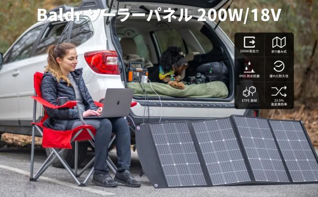 【正規代理店】BALDR PIONEER 200W 最新型ETFE ソーラーチャージャー 折りたたみ式 高転換率 DC出力 アウトドア IP65防水 太陽光発電