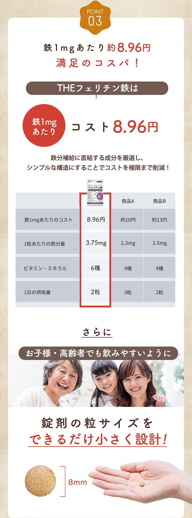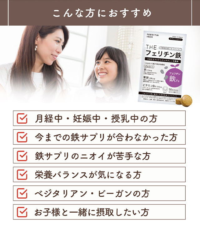 隠れ鉄分不足を補う鉄分サプリ!1日たった2粒で効率よく補えます!
