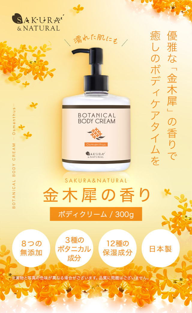 金木犀 ボディクリーム 300ml キンモクセイ きんもくせい ボディー クリーム ハンド マッサージクリーム マッサージ 乾燥 保湿 金木犀の香り 香り 香水 ボデイ オスマンサス 大容量 プレゼント ギフト ハンドクリーム