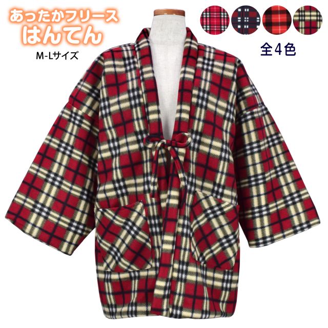 表地はフリースの チェック柄 裏地はキルティング。ポケット は前に2つ。共布のひもが付き。半天 を着ると、寒い時期には暖かく快適に過ごせます。冬はお家にいる時間も長くなりがちなので、暖かな 半纏 がおすすめです。