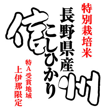 農薬を抑えた特別栽培米です。南アルプスの西麓に広がる上伊那地域(辰野町,伊那市,高遠町,長谷村,宮田村,南箕輪村,箕輪町,駒ヶ根市,飯島町,中川村)は、長野県南信地域として「特A」受賞のコシヒカリを生産する地域です。