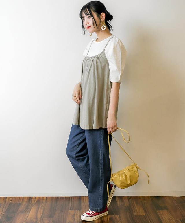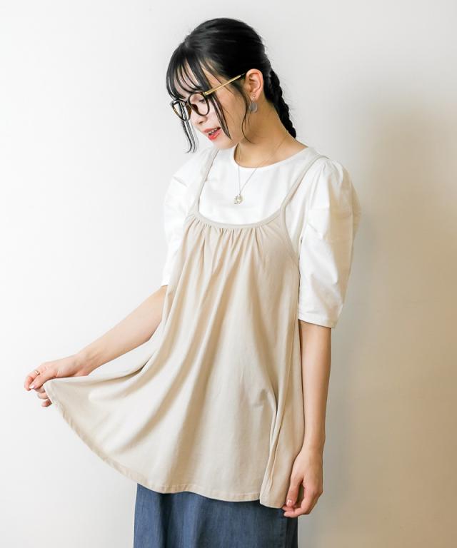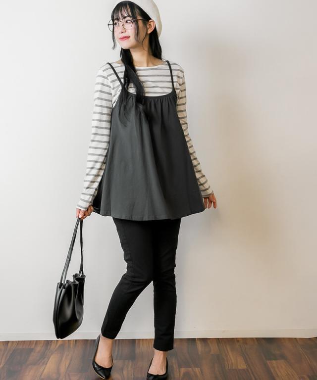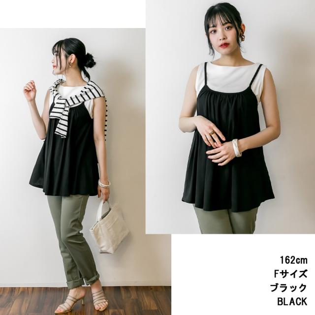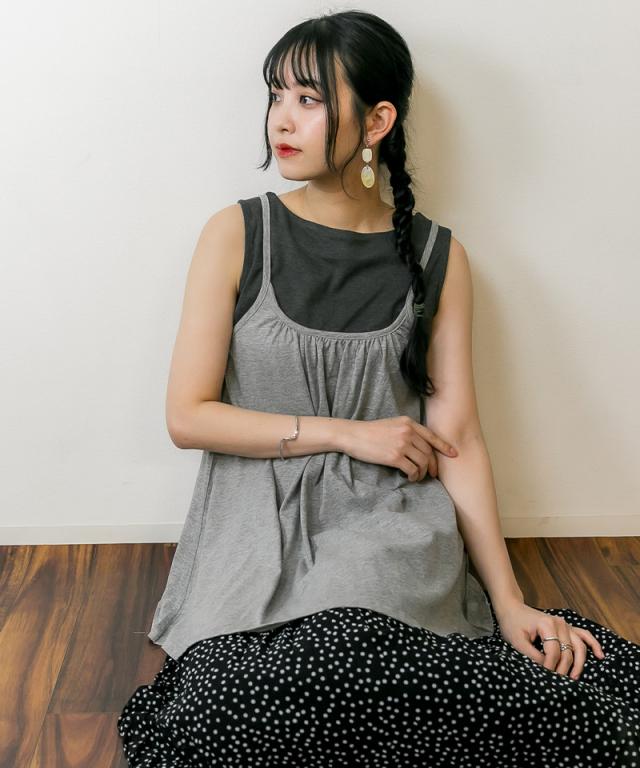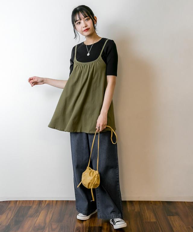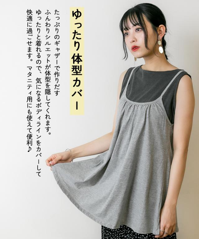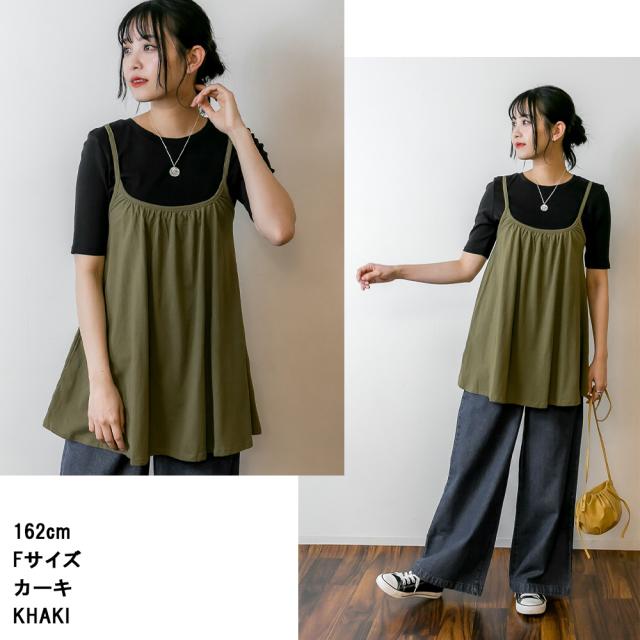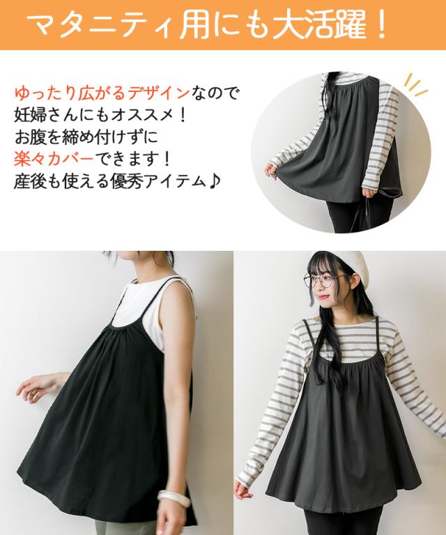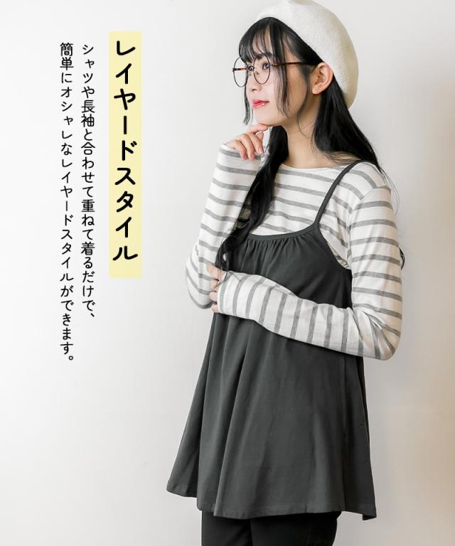 冬新作 フレア キャミソール チュニック キャミワンピ レディース トップス ベーシック 重ね着 レイヤード コットン 綿 シンプル ベーシック 体型カバー
