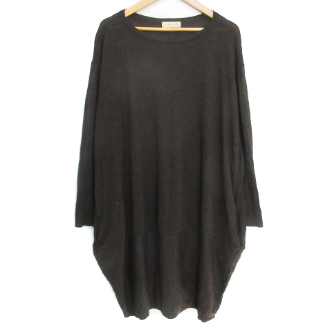【中古】シンクロ クロッシングズ ニットワンピース ひざ丈 長袖 ラウンドネック 無地 38 ダークブラウン レディース