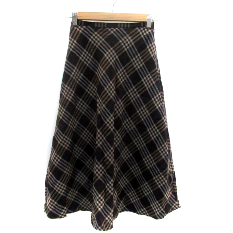 【中古】プリドール Plidoul フレアスカート ロング丈 チェック柄 ウール 茶色 ブラウン ベージュ /HO29 レディース