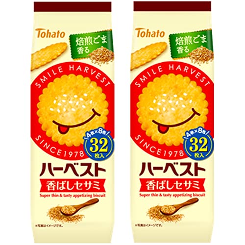 ハーベスト香ばしセサミ : 香ばしい焙煎ごまとすりごま、ねりごまをバランスよく生地に練り込み焼きあげることで、風味豊かなごまの味わいに仕上げました。ハーベストならではのサクサクと香ばしい味わいをお楽しみください。