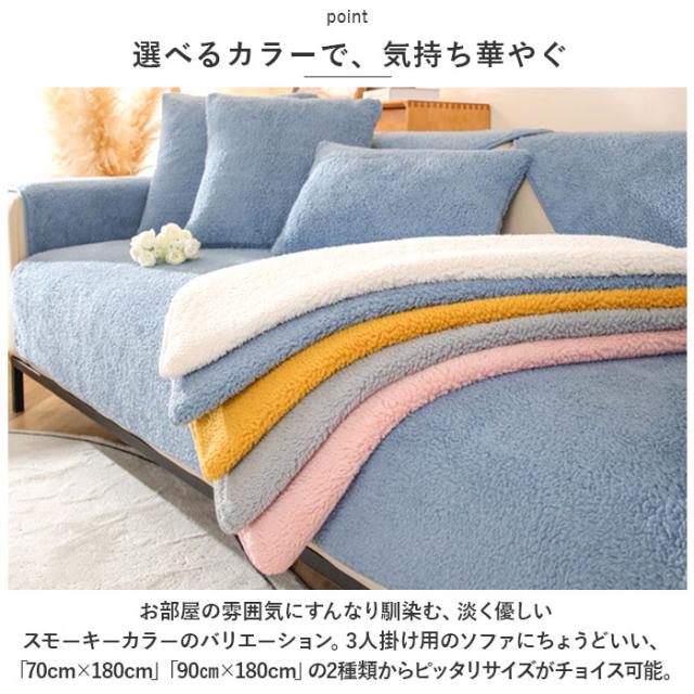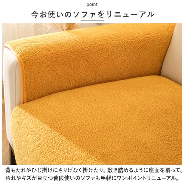 | 商品説明 | ・ふわふわのボア素材で、ソファを秋冬色に衣替え♪今お使いのソファにサッと掛けるだけ「3人掛け用ソファーカバー」 【秋冬らしい温かみのある素材感】 ・カバーの生地全体が、背中やお尻をふんわり優しく受け止めるふかふか・もこもこのボア素材。ソファーの表面をそっと撫でるだけで、ほっこりと癒される素材感。 【今お使いのソファをリニューアル】 ・背もたれやひじ掛けにさりげなく掛けたり、敷き詰めるように座面を覆って、汚れやキズが目立つ普段使いのソファも手軽にワンポイントリニューアル。 【ペットの爪とぎ対策に】 ・程よく厚みのある生地感なので、ネコちゃんやワンちゃんがガリガリと爪を立ててしまいがちな合皮やレザーのソファーにサッと掛けて、ペットの爪とぎ対策にも効果的。 【裏面ドット滑り止め加工】 ・裏面にはドット状に滑り止めが施されているため、お掃除のたびにカバーを直す手間がないのも嬉しいポイント! 【ご家庭でお洗濯OK!】 ・手軽にお手入れができる簡単ウォッシャブル仕様。いつでも清潔に使えて、小さなお子様やペットがいるご家庭でも安心。(※洗濯ネットをご使用ください。) 【選べるカラーで、気持ち華やぐ】 ・お部屋の雰囲気にすんなり馴染む、淡く優しいスモーキーカラーのバリエーション。3人掛け用のソファにちょうどいい、「70cm×180cm」「90cm×180cm」の2種類からピッタリサイズがチョイス可能。 |