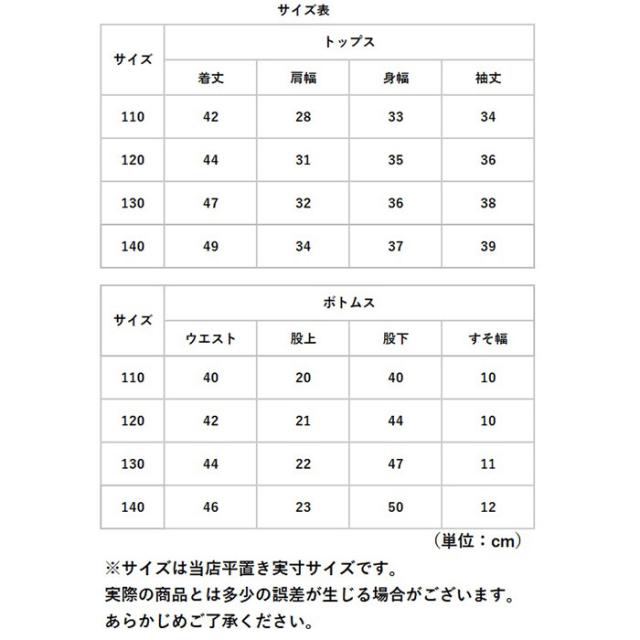 | サイズ | [キッズ] ・110 ・120 ・130 ・140 ※サイズについて詳細は、商品画像の中にあるサイズ表をご覧くださいませ。 |
