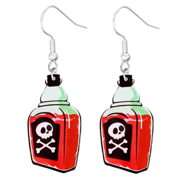 髑髏をデザインした毒薬をモチーフにしたオモシロイ、フックタイプのステンレスピアス。