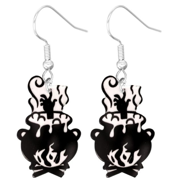 魔法の鍋 リアルステンレスピアス/1ペア販売 20G 20ゲージ 不気味 黒色 ブラック 影 シルエット 手 ハンド 魔女 魔法使い おもしろい オモシロ サージカルステンレス316L メンズ レディース 揺れる フックピアス アメリカンピアス アクリル プラスティック プレゼント ギフト