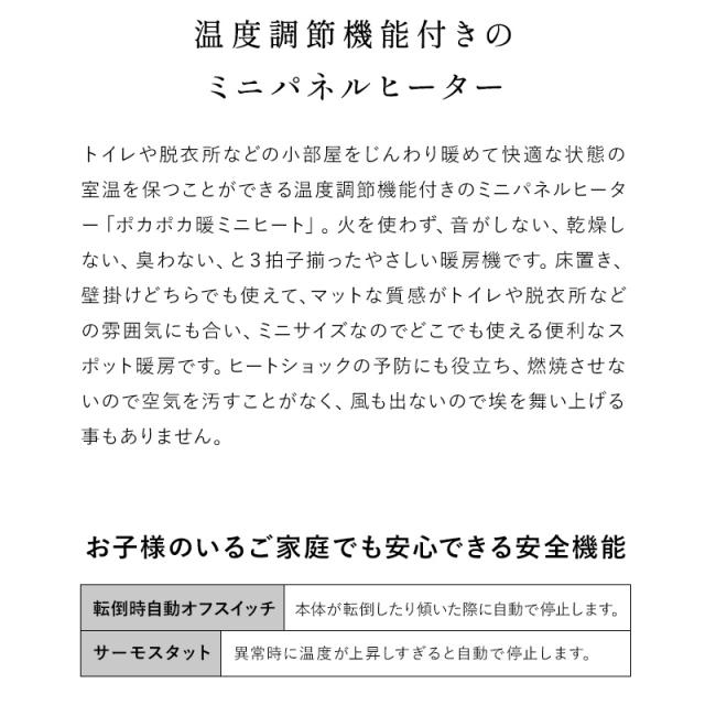 トイレ・脱衣所専用 ミニパネルヒーター ポカポカ暖ミニヒート 使い方 トイレ暖房 おすすめ パネルヒーター 人気 暖房 効果 電気ヒーター 比較 冬 家電 冬物家電 ランキング トイレ 足元 足もと 足下 お風呂 脱衣所 洗面所 暖房 電気ストーブ ストーブ ヒーター 薄型ヒーター 女性 男性 誕生日 母の日 父の日 敬老の日 寒さ対策 冷え対策 寒さ 冷え クリスマス ギフト プレゼント 贈り物 PHT-1731 口コミ PHT1731 クチコミ PHT-1731MW レビュー PHT-1731-MW 評判 PHT1731MW 通販 google グーグル yahoo ヤフー LINEショッピング 楽天市場