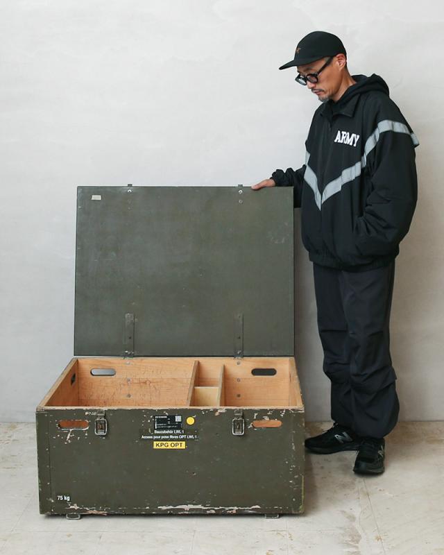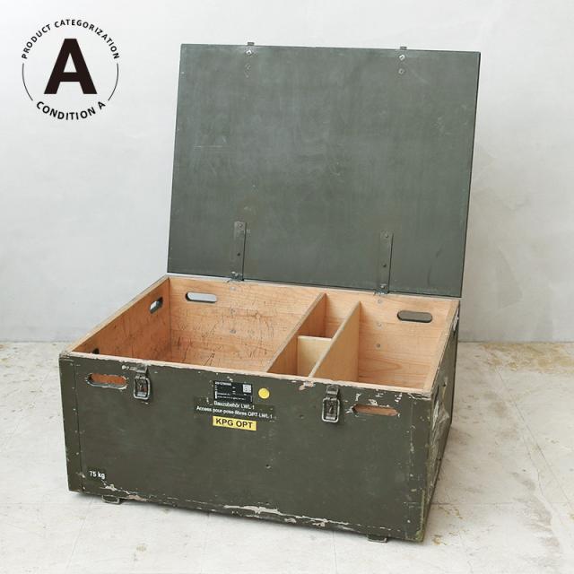 実物 USED スイス軍 ウッド ミリタリーボックス(仕切りBOXなし)コンディションA【Cx】【個別送料】【I】|インテリア 家具 収納 ビンテージ カーキ 木製 大きいサイズ 無骨 アンティーク おしゃれ