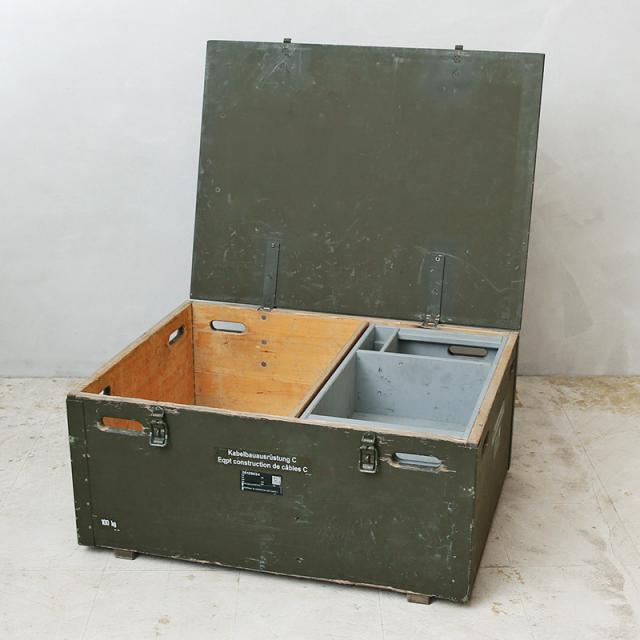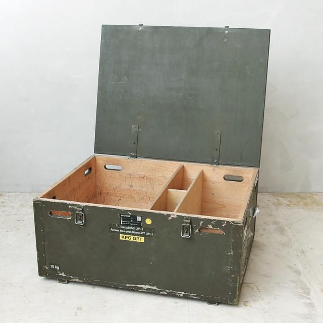 実物 USED スイス軍 ウッド ミリタリーボックス コンディションB【Cx】【I】【K】|インテリア 家具 収納 ビンテージ カーキ 木製 大きいサイズ 無骨 アンティーク おしゃれ