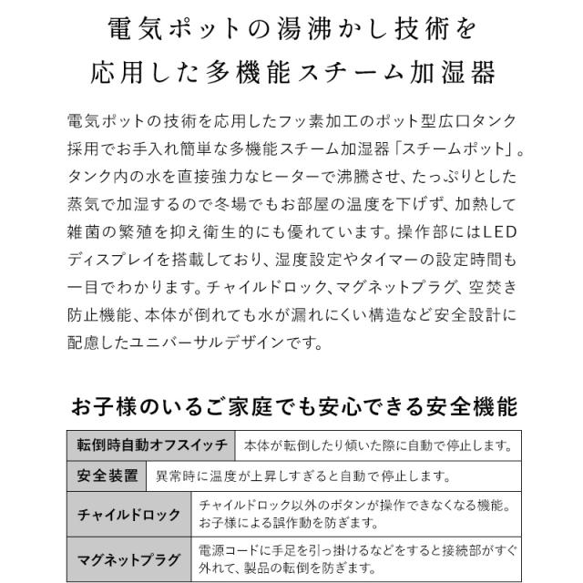THREEUP 多機能スチーム加湿器 スチームポット ST-T2370 スリーアップ 電気ポットの湯沸かし技術を応用 多機能スチーム加湿器 上部給水 ポット型加湿器 誰でも使いやすい ユニバーサルデザイン ![]() ![]() ![]() ![]() ![]() ![]() ![]() ![]() ![]() ![]() ![]() ![]() | ||||