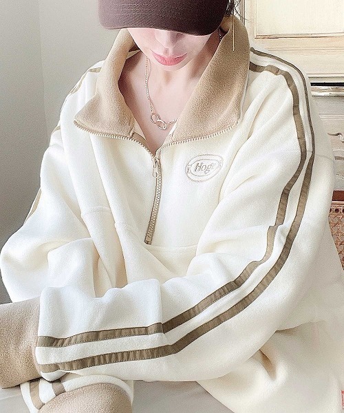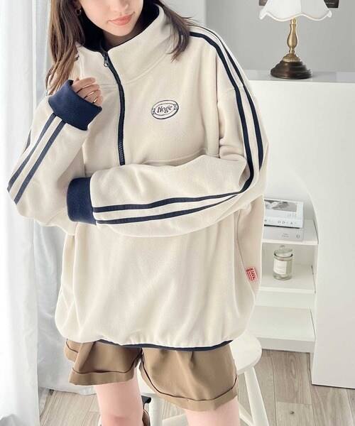 レトロスポーティ感が可愛い古着ライクなフリースアノラックハーフジッププルオーバー。