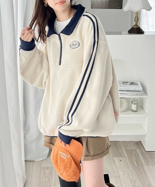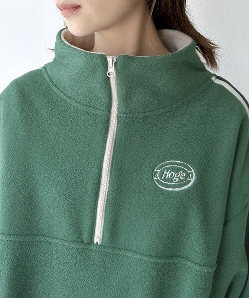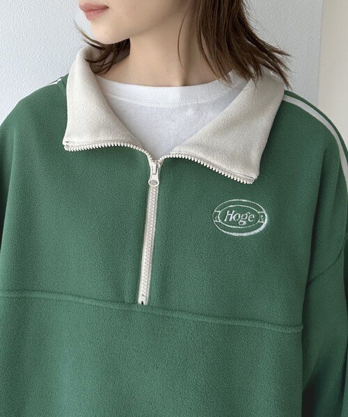トレンドの「ハーフジップ×ワンポイント刺繍ロゴ」