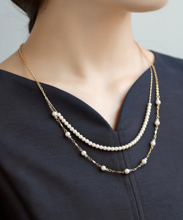 パール×ビーズステーション2連ネックレス