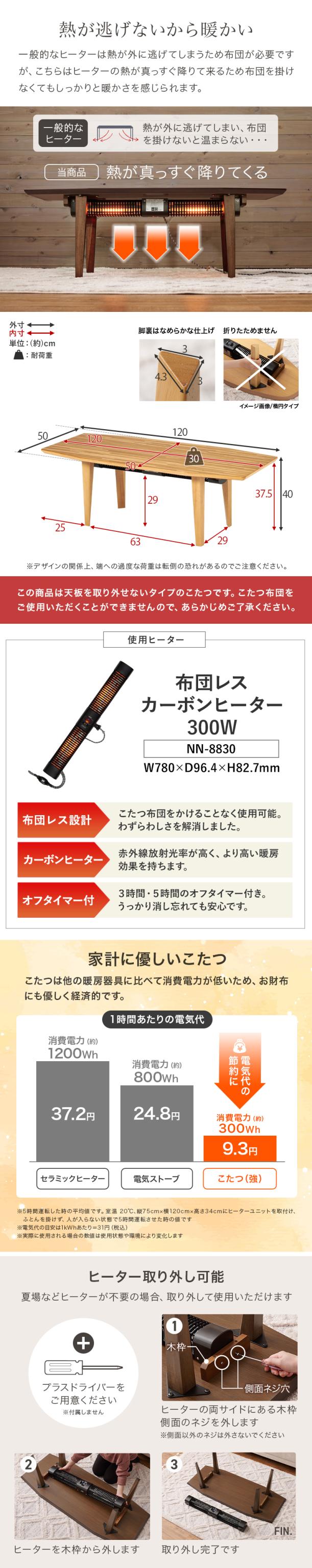 ※この商品は天板が取り外せないタイプです。こたつふとんはご使用いただけません。ご了承下さい。
